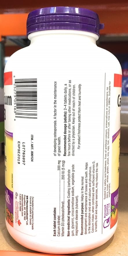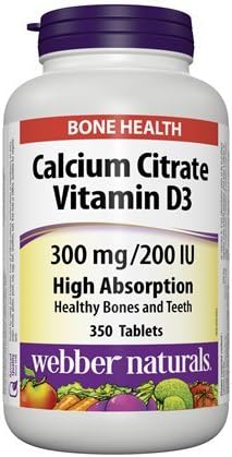 Webber Naturals Calcium Citrate Vitamin D3, 300mg / 200IU High Absorption, 350 Tablets