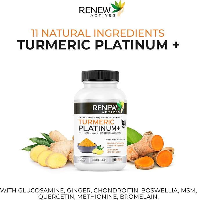 - COMPREHENSIVE WELLNESS: Renew Actives Turmeric Platinum enhances multiple aspects of health with a holistic approach. Its targeted ingredients help strengthen immune function, manage inflammation, and improve overall vitality and well-being