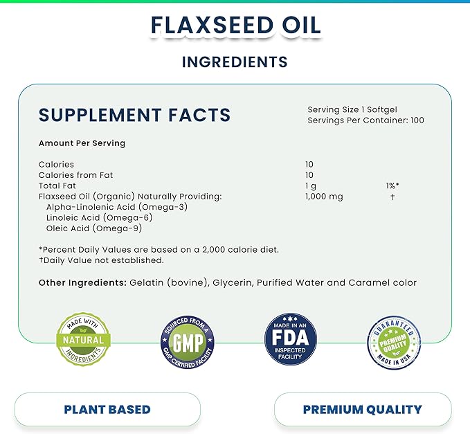 - TRUSTED FORMULA - 100% NATURAL AND ORGANIC - Flax seed oil organic supplements lare plant-based and ideal for those who don't eat fish. Easy to swallow, our burpless flaxseed softgels are designed to be the perfect size for men and women!