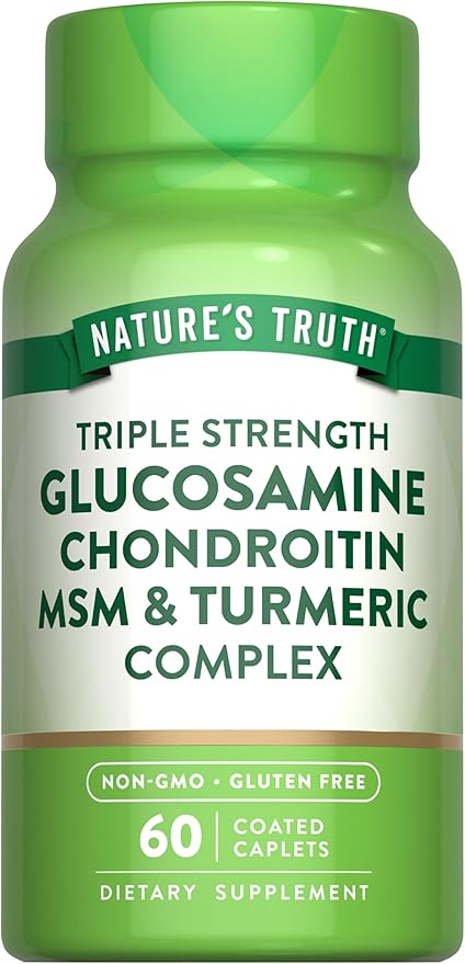 Nature's Truth Glucosamine Chondroitin MSM Complex | 60 Caplets | with Turmeric | Triple Strength Formula | Non-GMO and Gluten Free Supplement