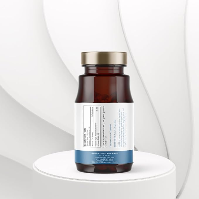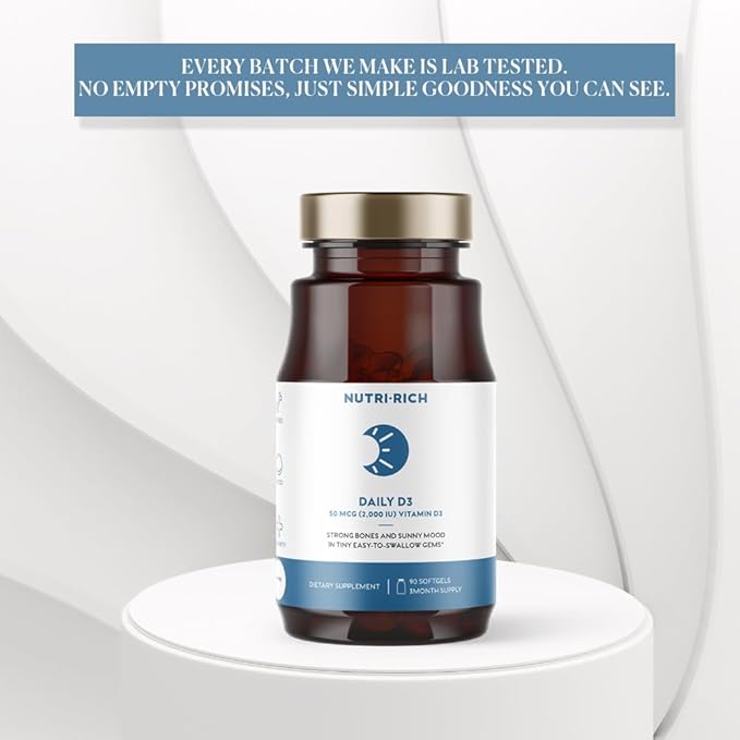 Nutri-Rich Daily Vitamin D3 2,000 IU (50 mcg) Dietary Supplement for Bone, Immune Health Support, Healthy Teeth, Healthy Muscle Function, Gluten Free, Soy Free, Vitamin D 90 Softgels