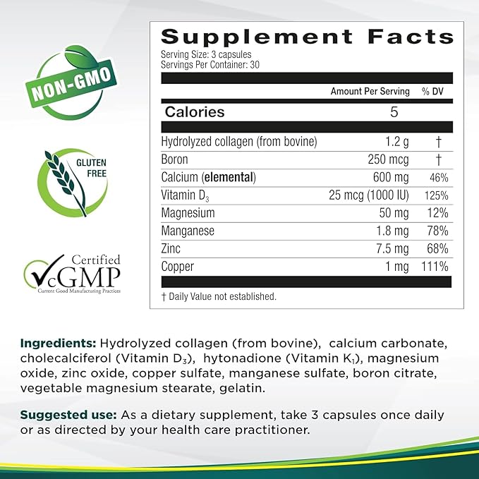 - Vitamins & minerals for bone health: Contains Boron and 1000 IU of Vitamin D3 to optimize the calcium and magnesium also contained in this joint supplement
