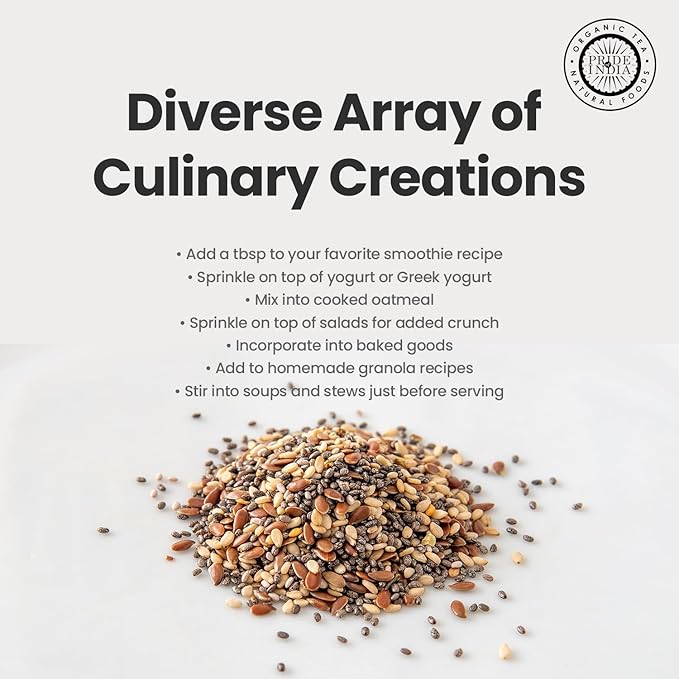 Pride Of India - Triple Omega Superseed Mix - Protein, Fiber, Calcium, Iron, Omega-3, Omega-6, & Thiamin Rich Superfood w/Chia Flax & Sesame Seeds, 1.25 Pound (20oz) Jar