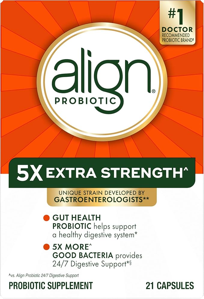 Align Probiotic Extra Strength, Probiotics for Women and Men, #1 Doctor Recommended Brand‡, 5X More Good Bacteria^ to Help Support a Healthy Digestive System*, 21 Capsules (Packaging May Vary)
