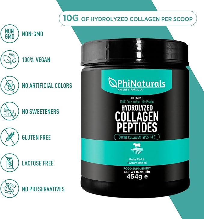 PhiNaturals Hydrolyzed Collagen Peptides Powder (unflavored) for Women and for Men - Grass Fed Bovine Beef Collagen