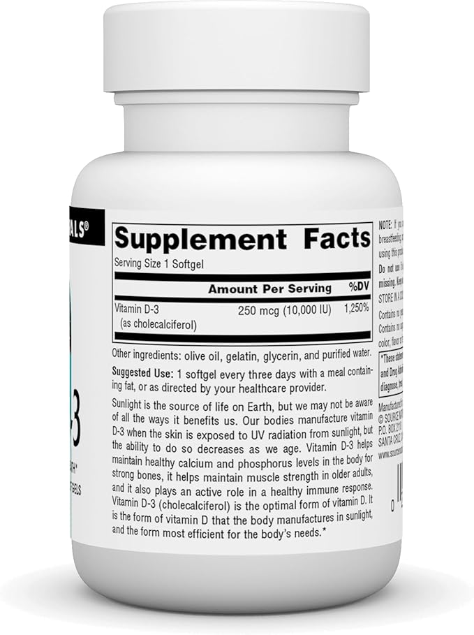 Source Naturals Vitamin D-3, Supports Bone & Immune Health*, 250 mcg (10,000 IU) - 60 Softgels