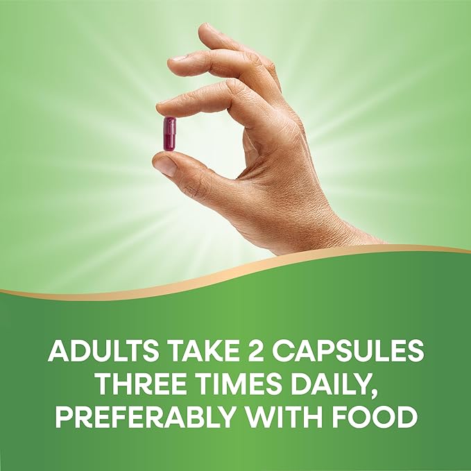 - Adults take 2 capsules 3 times daily, preferably with food.