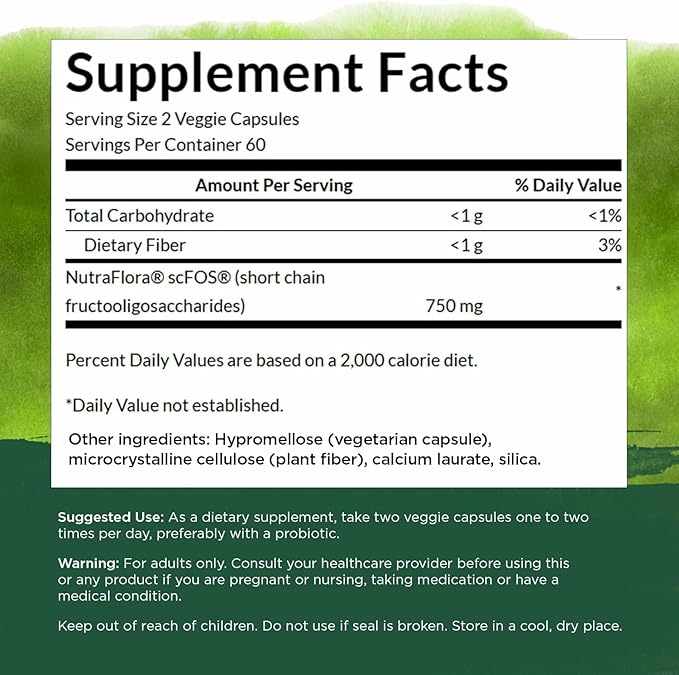- Studies have shown that just one gram per day of NutraFlora may help to increase friendly flora by 500% in just four weeks Each of Swanson's easy to swallow capsules delivers 750mg short-chain FOS for digestive wellness