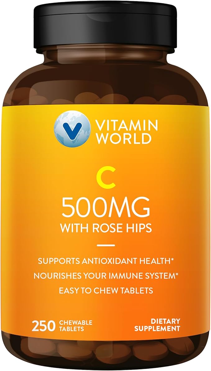 Vitamin World Vitamin C 500 mg with Rose HIPS Natural Orange Flavor, 250 Tablets