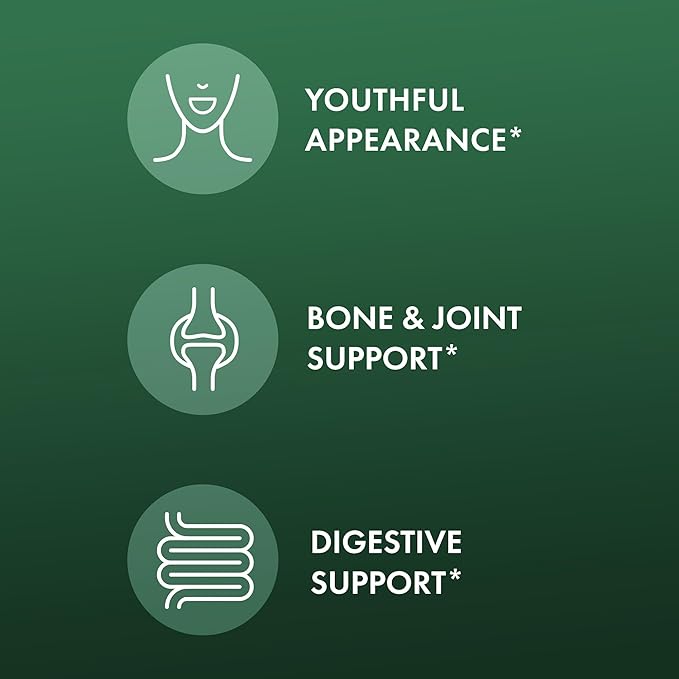 - These natural, collagen-rich superfood tablets also support strong bones, joints, muscles and healthy digestion*