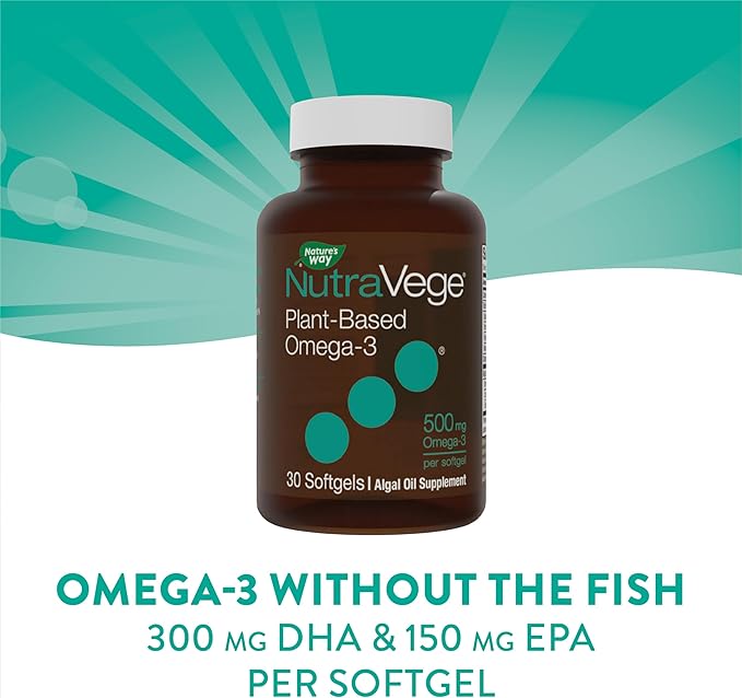 Nature's Way NutraVege Plant Based Omega-3, Heart Health and Eye and Brain Function*, 30 Vegan Softgels
