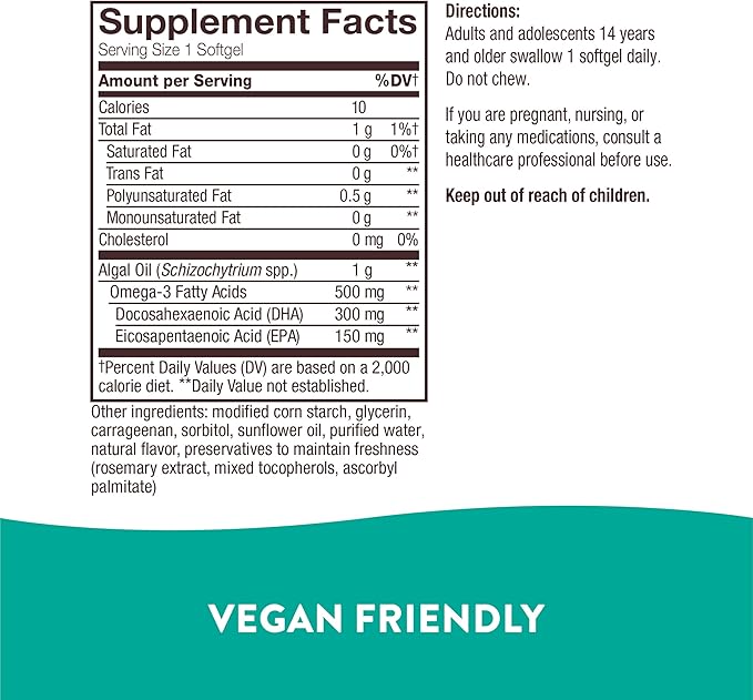 - Get all the benefits of an omega-3 in a vegan-friendly, fish-free formula derived from algae.