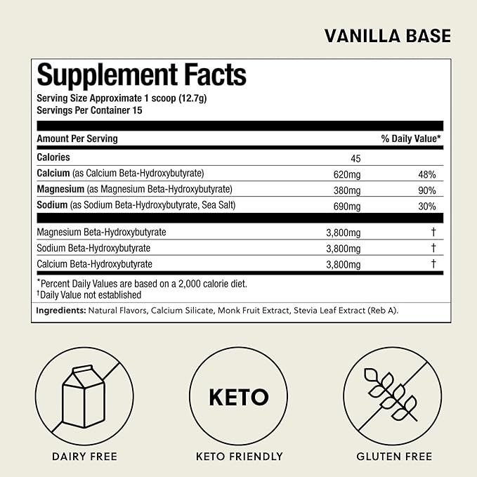 Perfect Keto Exogenous Ketones Powder, BHB Salts Supplement for Ketosis & Fasting, Plus Electrolytes for Hydration, Caffeine Free Energy, Keto Diet, Focus & Workout Support, Vanilla, 6.7 oz