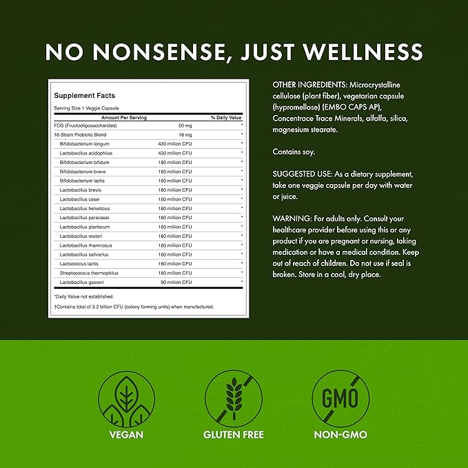 Swanson Dr. Stephen Langer's Formula - Natural Probiotic w/Prebiotic FOS - 16-Strain Supplement Promoting Digestive Support w/ 3.2 Billion CFU per Capsule - (60 Veggie Capsules)