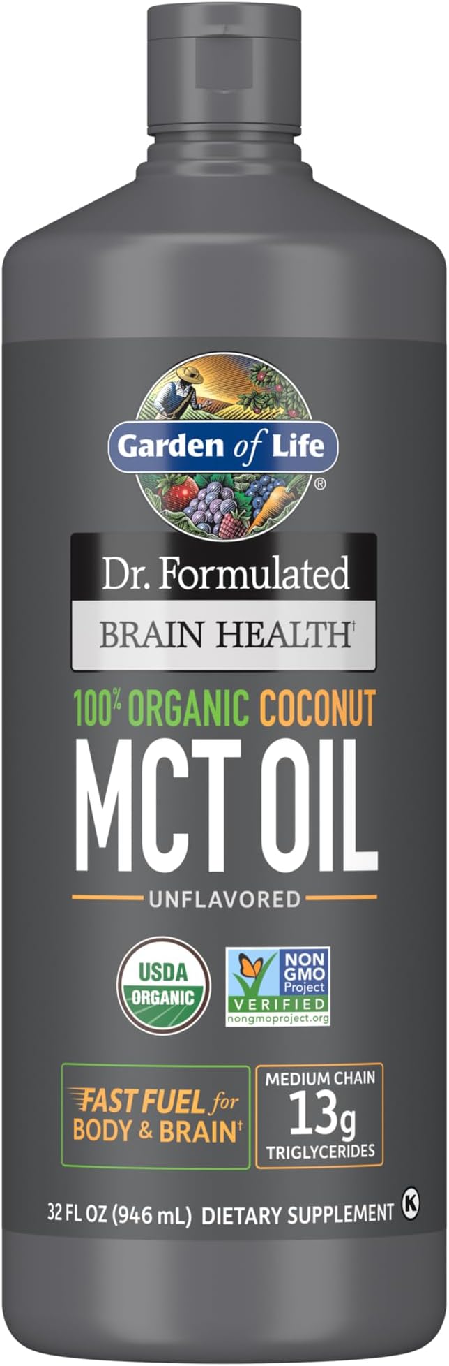 Garden of Life Dr. Formulated Brain Health 100% Organic Coconut MCT Oil 32 fl oz Unflavored, 13g MCTs, Keto & Paleo Diet Friendly Body & Brain Fuel, Certified Non-GMO Vegan & Gluten Free, Hexane-Free