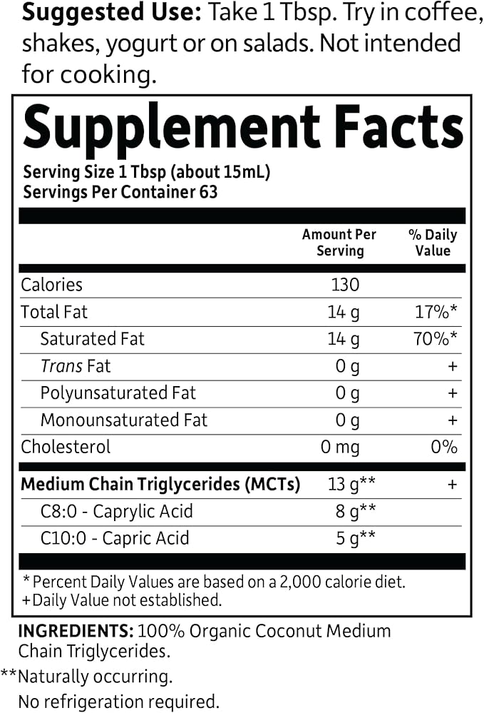 - NATURAL ENERGY: 13g of MCTs (including caprylic & capric acids) only from sustainably-grown organic coconuts