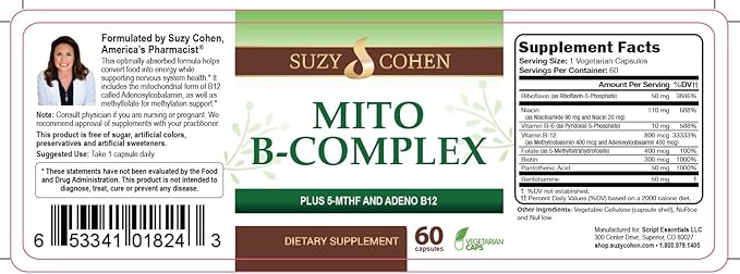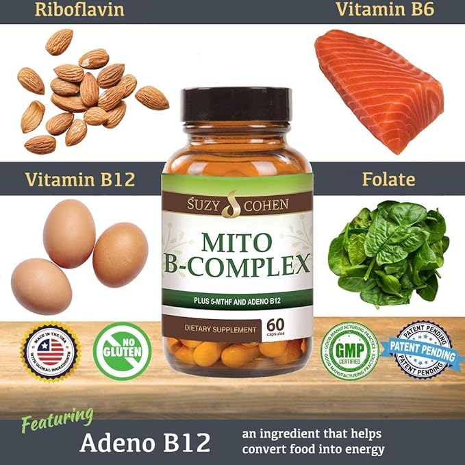 - INCREASE ENERGY: Suzy Cohen's Mito B Complex contains the power of Vitamin B-12 that helps with optimal absorption to convert food into energy..