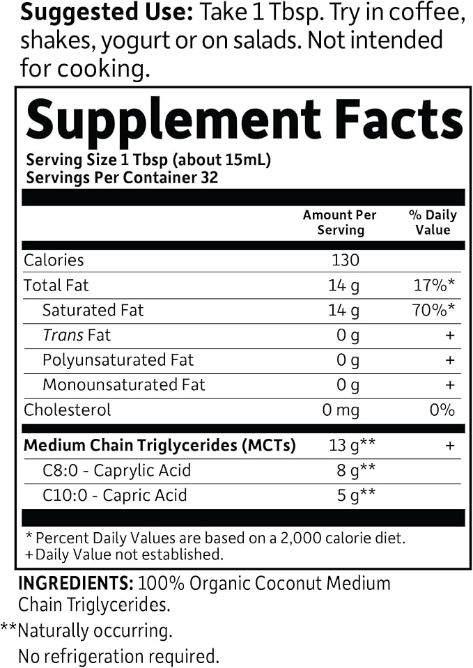 - NATURAL ENERGY: 13g of MCTs (including caprylic & capric acids) only from sustainably-grown organic coconuts