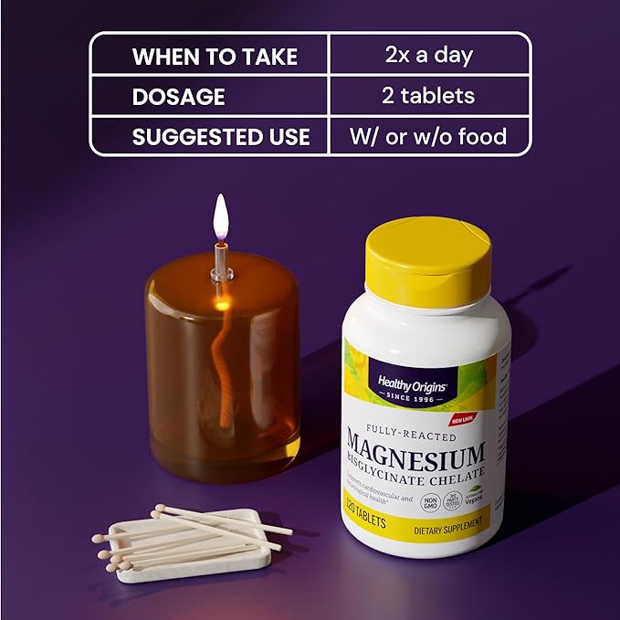 Healthy Origins Magnesium Bisglycinate Chelate (Albion Minerals, Non-GMO, Gluten Free, Cardiovascular Support, Bone Support, Neurological Support, Vegan), 360 Tablets