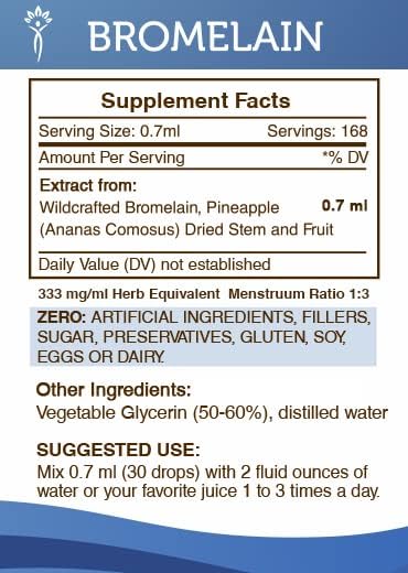 Secrets of the Tribe Bromelain Tincture Alcohol-Free Extract, Wildcrafted Bromelain, Pineapple (Ananas Comosus) (4 FL OZ)