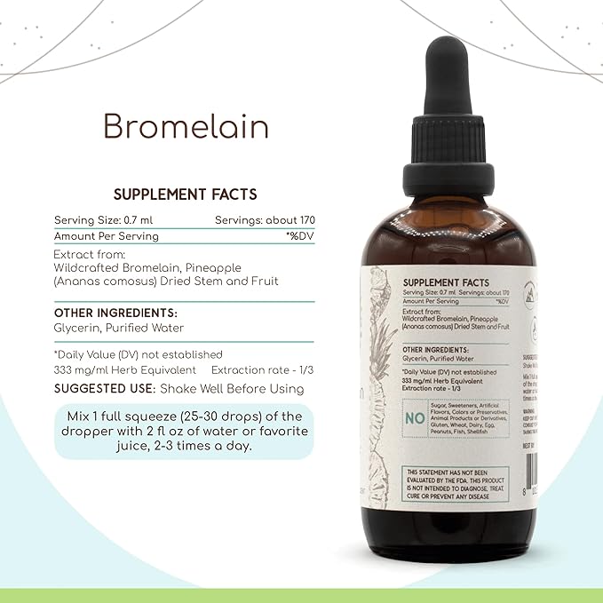 Bromelain B120 Alcohol-Free Herbal Extract Tincture, Super-Concentrated Wildcrafted Bromelain, Pineapple (Ananas comosus) (4 fl oz)