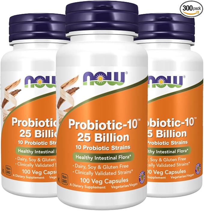 NOW Foods Probiotic-10 25 Billion, 100 Count (Pack of 3)