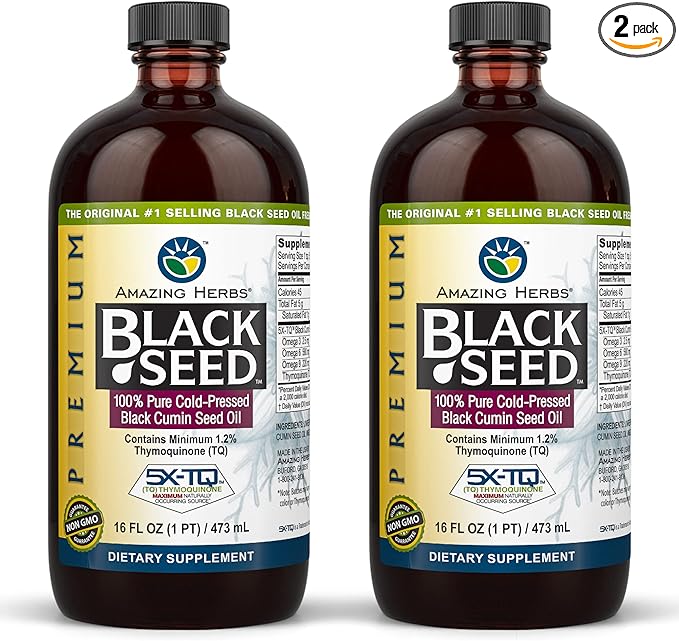 - BLACK SEED EXPERTS - Amazing Herbs Premium Black Seed Oil Formulation Delivers Natural Oil Intended for Oral Administration, Contains Omega Fatty Acids & 5x Thymoquinone for Health Benefits