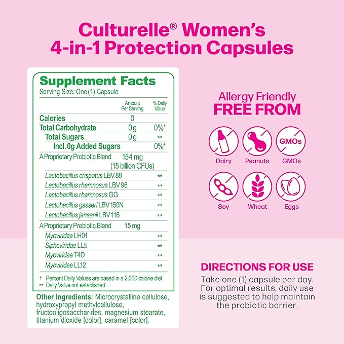 - PROVEN EFFECTIVE Culturelle Women’s 4 in 1 Protection is powered by a unique blend of proven probiotics designed for a woman’s specific needs.* This blend includes the Lactobacillus rhamnosus GG strain