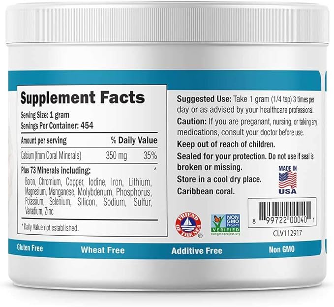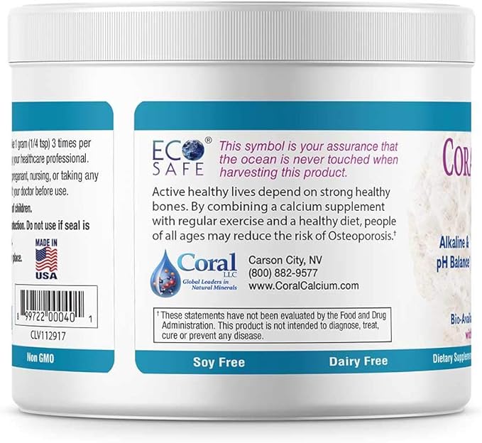 - Our above-sea coral calcium powder consists of every mineral found in the human body in similar proportions. Super fine powder for fast absorption. 100% pure above-sea coral calcium. Gluten free, wheat free, soy free, dairy free, non-GMO and Excipient free. Helps support Alkaline & pH balance. Made in the U.S.A