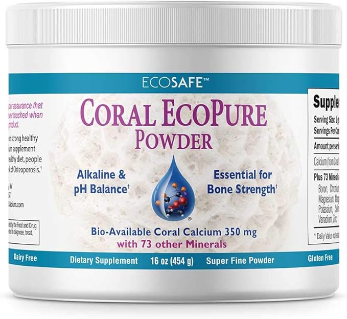 - Coral Ecpure Powder is a coral calcium Powder with 72 naturally-occurring trace minerals. Marine grade above sea coral calcium supplement. Coral EcoPure Powder is only harvested from pollution free above sea coral.