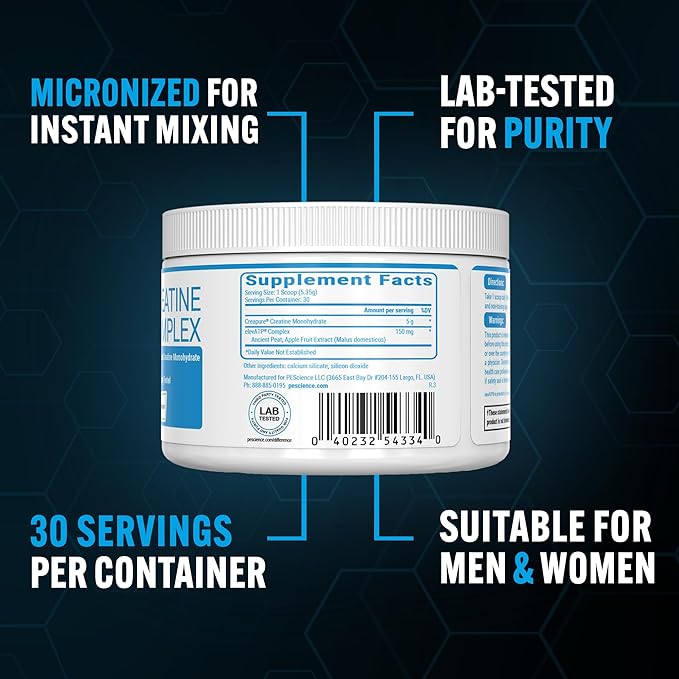 PEScience TruCreatine+ Creapure Creatine Monohydrate Powder, Micronized Creatine with ElevATP, 5g Per Serving, for Men & Women, Supports Muscle Growth, Strength & Recovery, 30 Servings
