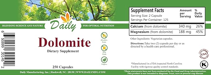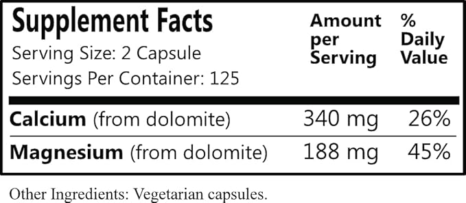 - Primary Supplement Type : Dolomite containing Calcium & Magnesium