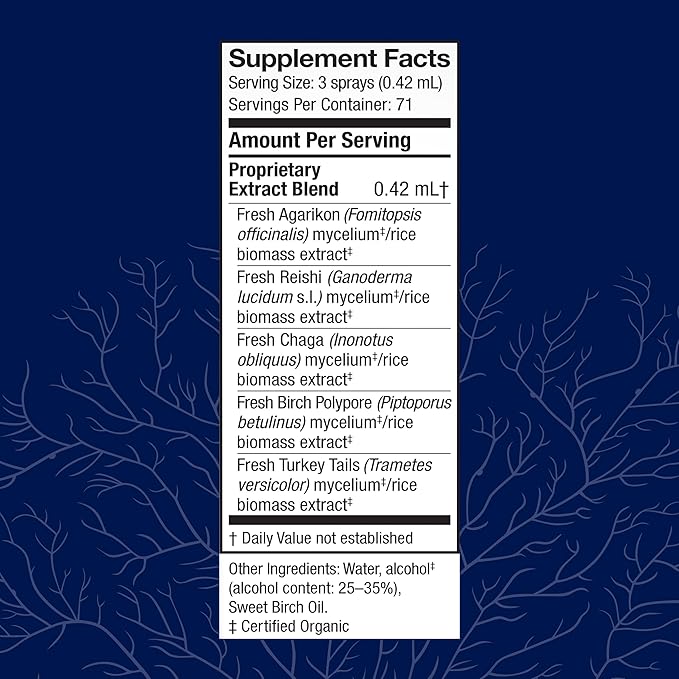 - Daily Mushroom Immune Support: As an herbal supplement, apply 3 pump sprays into the mouth, then swallow; do this three times daily with food or on an empty stomach*