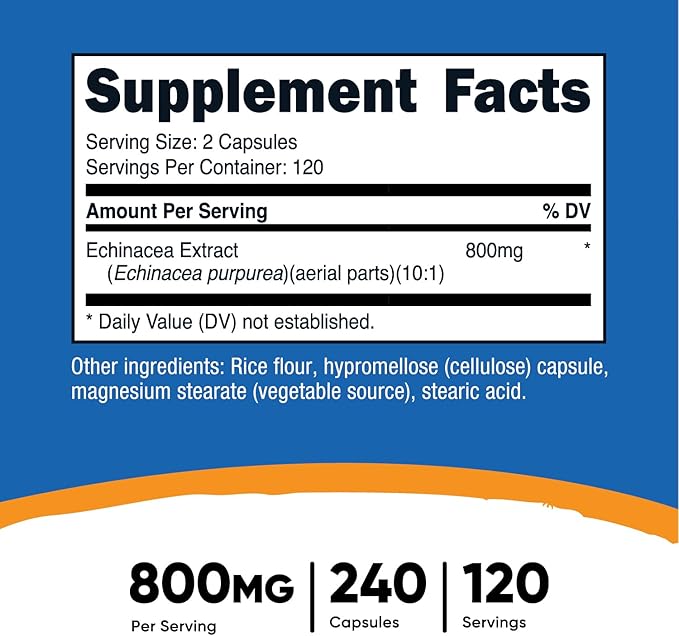 Nutricost Echinacea 800mg, 240 Capsules - Vegetarian Caps, Non GMO, Gluten Free, 120 Servings
