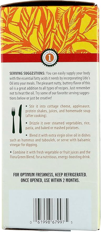 Flora - Udo's Oil DHA 3-6-9 Blend - Vegetarian Eye & Brain Health Supplement - Omega-3 & Omega-6 - Contains Sunflower & Flax Seed Oil - Kosher & Organic - Keep Chilled - 17 fl. oz.