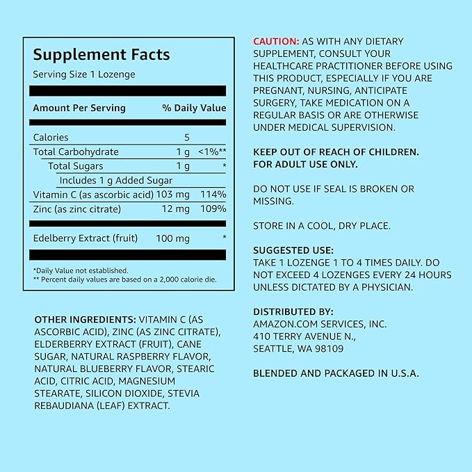 Amazon Elements Elderberry Complex Berry Flavored Immune System Support Lozenges, Adult, 60 Count, (Packaging may vary)