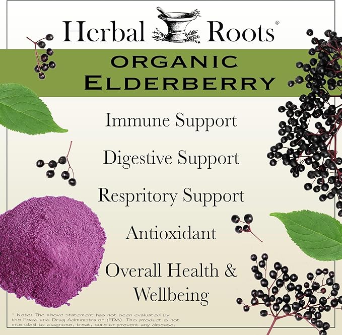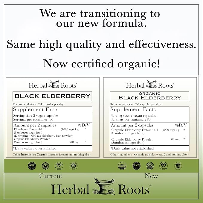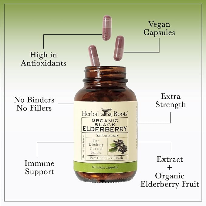 Herbal Roots Organic Black Elderberry Capsules | Max Strength | Made with Organic Sambucus | 60 Vegan Capsules