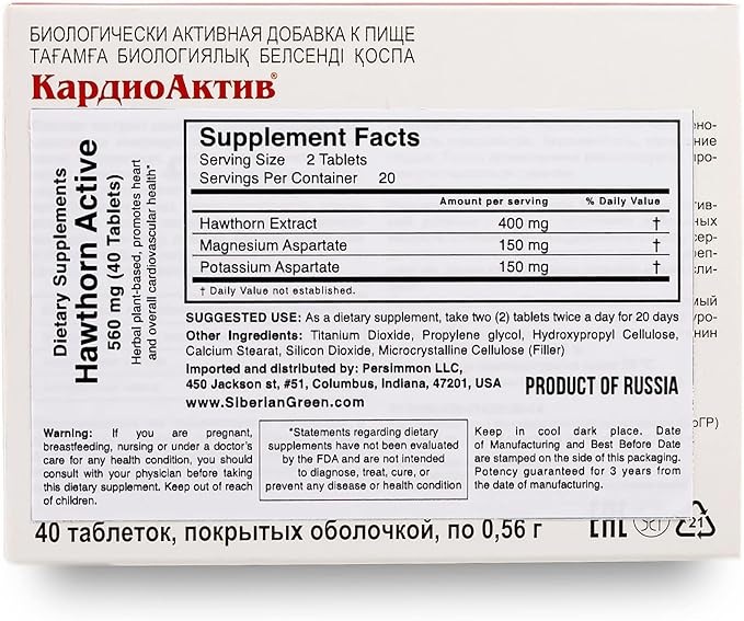 - 40 Tabs, manufactured under GMP standards by Evalar