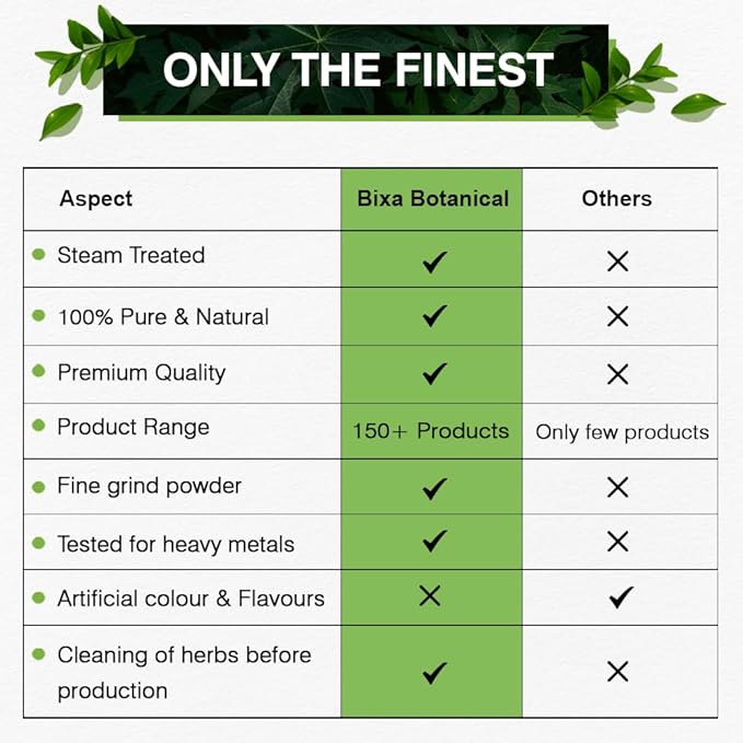 - STEAM TREATED FOR PURITY: At Bixa Botanical we prioritize your well-being with our premium quality products. Unlike harsh processes such as Radiation and ETO, we adhere to a "no use" policy. Our herbal powders and herbs are steam treated, a chemical-free method that removes impurities while preserving the natural integrity. This extends shelf life and meets international standards for quality and safety. The steam treatment may slightly alter the color or taste, a testament to our authentic products. Your safety and satisfaction are our top priorities.