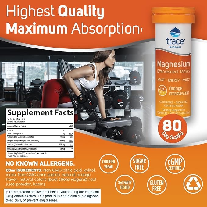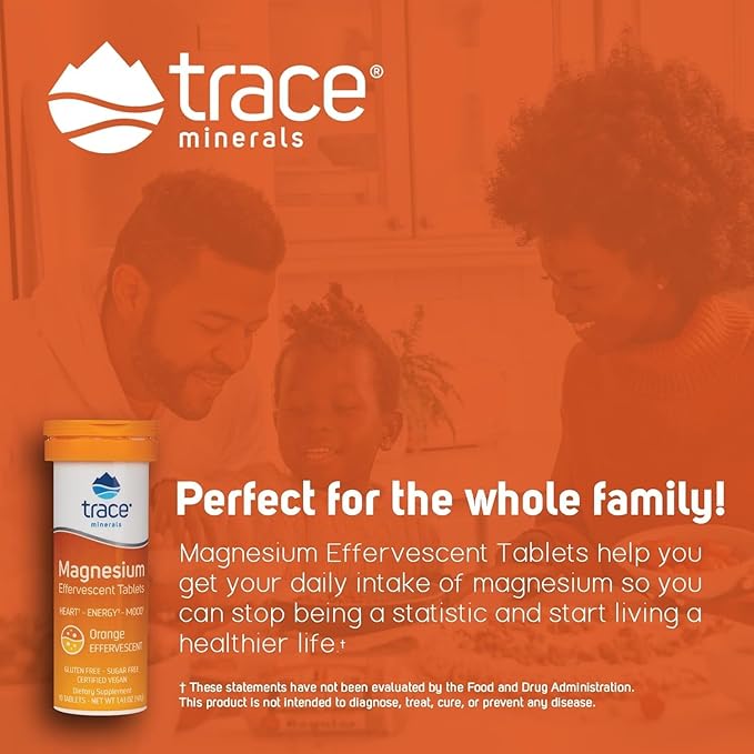 Trace Minerals Magnesium Effervescent - Bone & Circulatory Health Support Supplement - Magnesium Supplement to Aid Cardiovascular Health & Positive Outlook - Orange, 8 Containers (80 Servings)