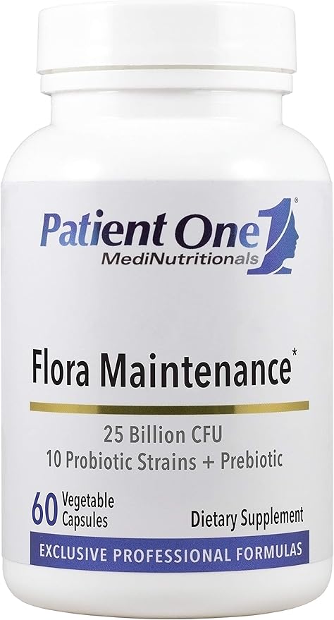 Patient One Flora Maintenance | Probiotic Supplement to Aid Balanced Intestinal Flora* | 25 Billion CFU, 10 Probiotic Strains, Prebiotic | 60 Capsules