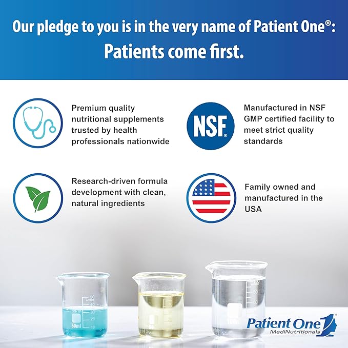 - About Patient One: As a leading healthcare professional brand, Patient One is trusted by thousands of practitioners for our premium quality supplements. Our research-driven formulas are made with high quality raw ingredients, manufactured in an NSF-certified, GMP facility to stringent quality standards, and rigorously tested at all stages.