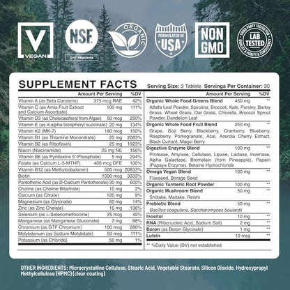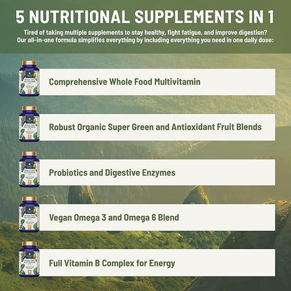 - BEST MULTIVITAMIN FOR MEN & WOMEN – Enjoy the highest quality Organic Multivitamin for Women/Men in our superior, 100% VEGAN MULTIVITAMINS made with + 30 Fruits, Vegetables & Herbs, plus powerful Mood Probiotic Strains, Digestive Enzymes, Vegan Omegas, Green Superfoods +more! SAVE TIME & MONEY with our complete multivitamin mineral complex. Yes, the best choice can also be the easiest!