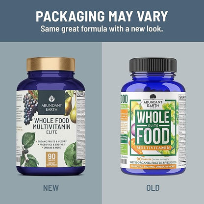 Whole Food Multivitamin for Women, Daily Multi Vitamins Supplements for Men/Mens Multivitamins + B Complex, Probiotic Multi Enzyme, Omegas for Organic Energy, Mood, Digestion 90ct