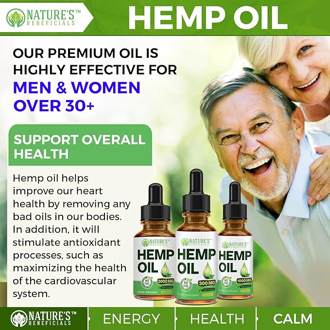 NATURE'S BENEFICIALS Organic Hemp Oil Extract Drops, 300mg - Omega Fatty Acids 3 6 9, Non-GMO Ultra-Pure CO2 Extracted