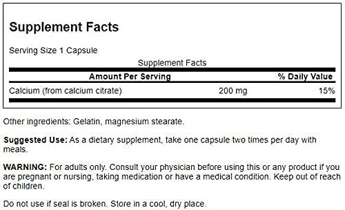 Swanson Calcium Citrate 200 mg 60 Caps (3 Pack)