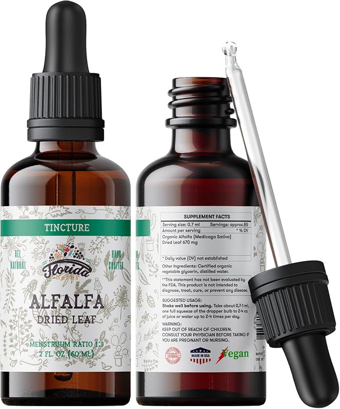 - HIGHEST QUALITY ORGANIC ALFALFA TINCTURE - Florida Herbs products consist entirely of pure ingredients, including wild plants and certified organic ingredients.