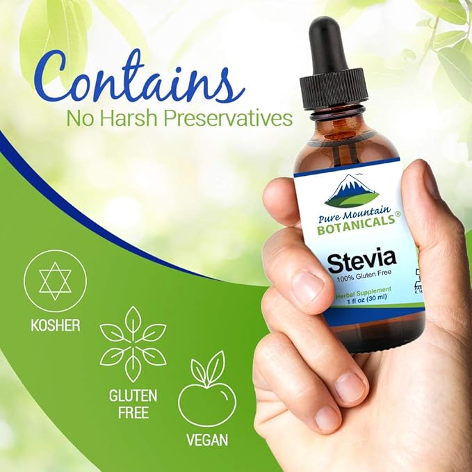 - HIGH-QUALITY SUPPLEMENT: Made in an FDA-registered, GMP- and kosher-certified facility in the USA, Pure Mountain Botanicals ensures that these sweet Stevia Drops are the highest quality, potency and consistency every time.