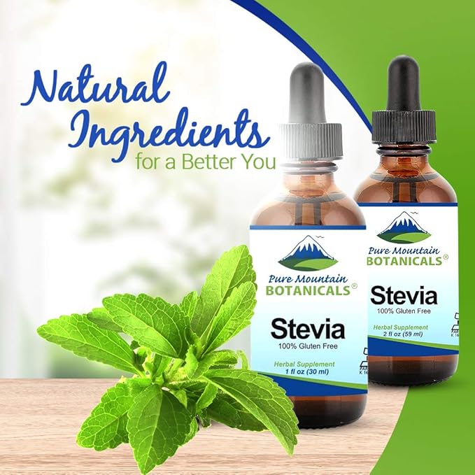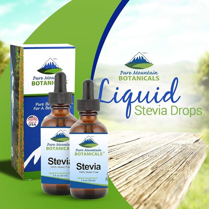 Pure Mountain Botanicals Liquid Stevia Drops - Natural Sweetener - Concentrated Sugar Free Substitute Diabetic Friendly Ideal for Keto Low Carb and Vegan Diet Great Addition to Weight Loss Program