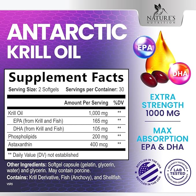 - Krill Omega 3 Supplement: Nature's Nutrition Antarctic kril oil omega3 softgels with astaxanthin dha epa 1000 1000mg supplements small 500mg liquid capsules sourced from red crill 2000 2000mg aceite cril antartico de pescado 4 50 500 free of coq10 arctic omga3 fish oul pills fatty acid acids for heart health support natures antartic best dynamic in mg strength natural triglyceride for women and men